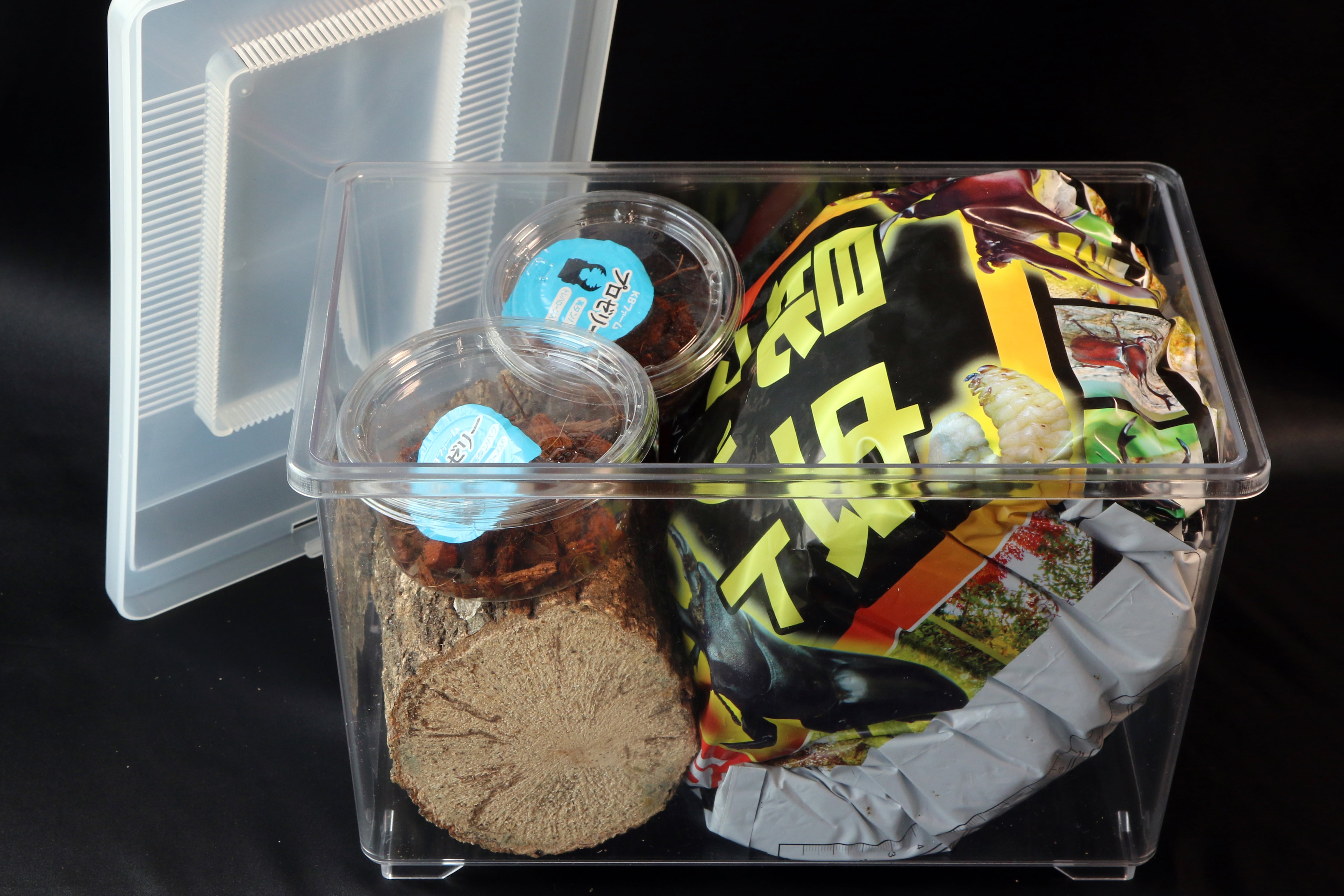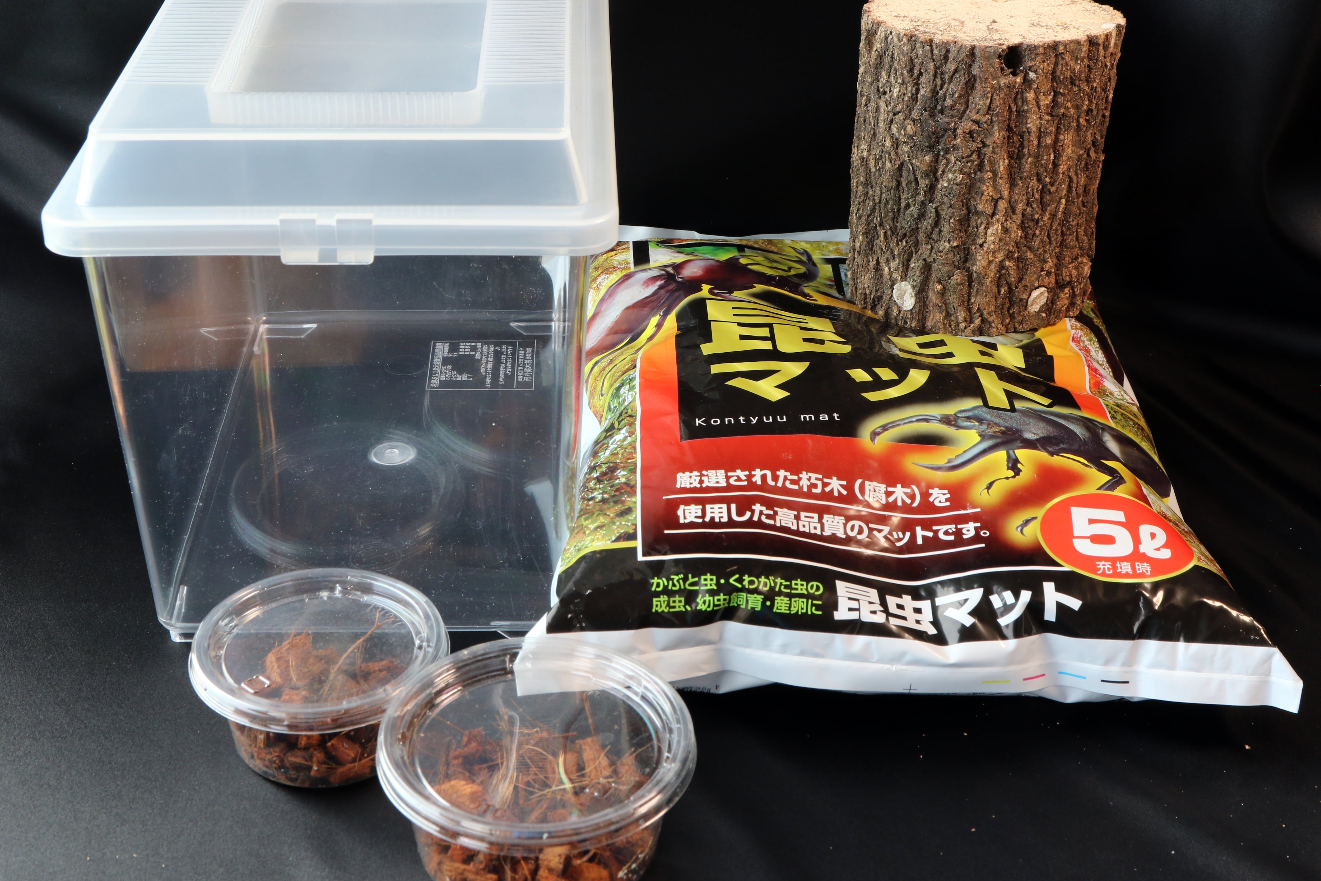 オオクワガタの飼育に必要な物がセットになっており、簡単にオオクワガタの飼育に挑戦することが出来ます。また、産卵に必要な「産卵木」もセットされており、うまく飼育出来れば卵を産ませる事も可能です。